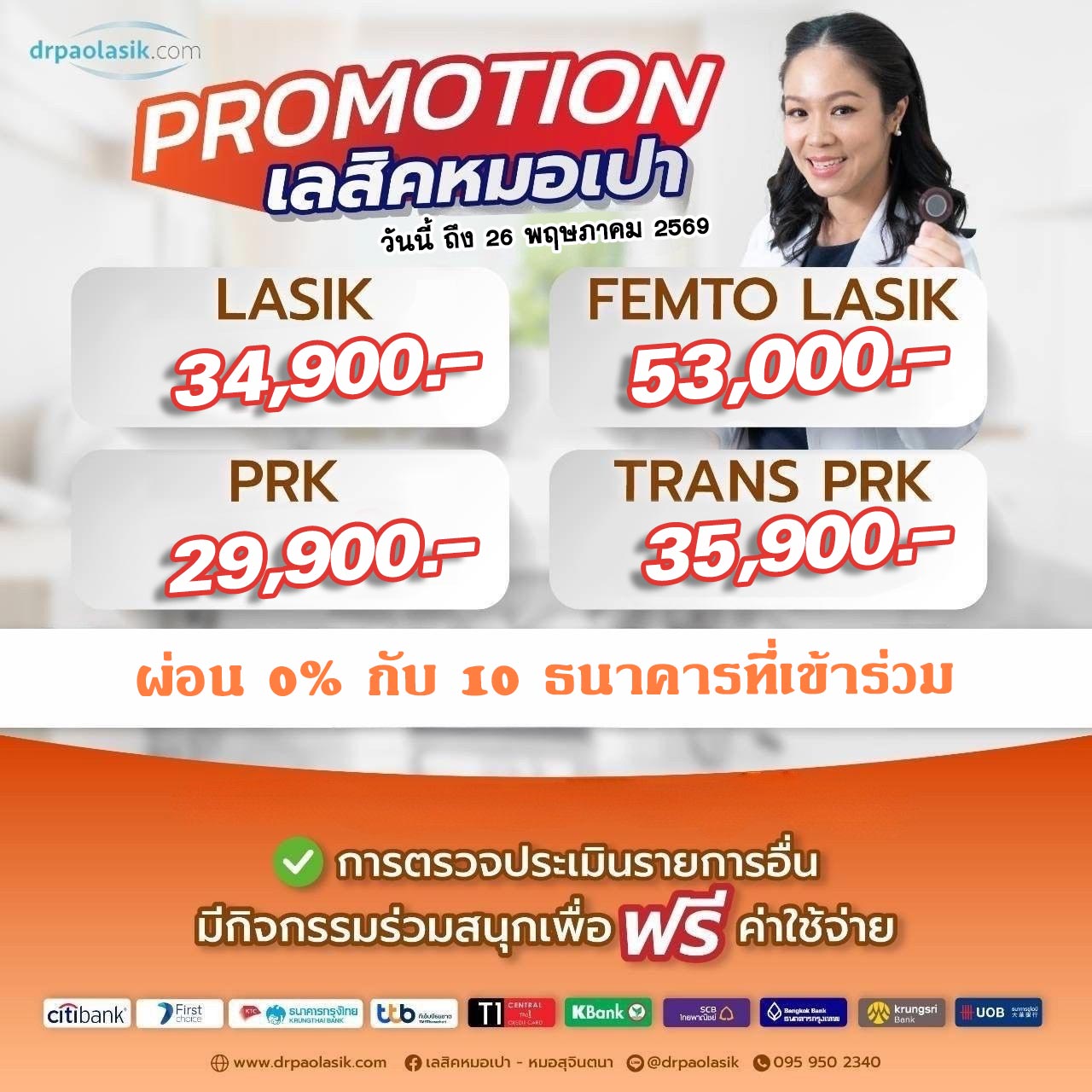เราพร้อมดูแลดวงตาคุณ ด้วยเครื่องมือเลสิค LASIK และเทคโนโลยี เฟมโตเลสิค พร้อมแก้ไขทุกปัญหาสายตาที่เลือกสรรเฉพาะบุคคล เพื่อความเหมาะสมกับดวงตาคุณ โดยจักษุแพทย์ที่มีความเชี่ยวชาญเฉพาะทางและมากด้วยประสบการณ์ รวมถึงเจ้าหน้าที่ที่มีความเชี่ยวชาญและความเอาใจใส่ในการให้คำปรึกษา
